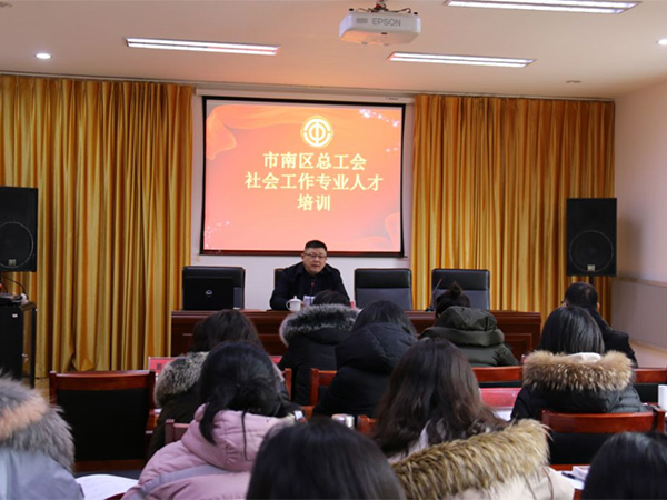 ????青報網(wǎng)訊? 1月16日至17日上午,市南區(qū)總工會在市南區(qū)職工服務(wù)中心舉辦工會社會工作專業(yè)人才培訓班,2020年新招聘的工會社會工作專業(yè)人才和現(xiàn)有的工會社會工作專業(yè)人才近40人參加了本次培訓。市南區(qū)總工會黨組書記、常務(wù)副主席董曉斌參加開班儀式并講話。