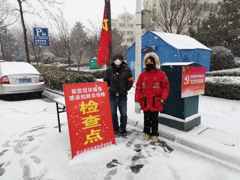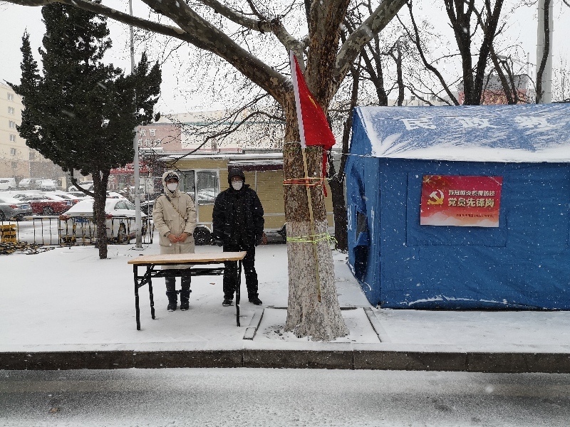 一面黨旗就是一塊陣地,一個(gè)黨徽就是一份擔(dān)當(dāng)。黨組班子成員發(fā)揮帶頭表率作用上一線,局機(jī)關(guān)干部不分年齡和性別克服困難、服從調(diào)配,特別是財(cái)務(wù)人員巾幗不讓須眉也參加輪流上崗,大家風(fēng)雪中清掃積雪、站崗執(zhí)勤毫無怨言,用實(shí)際行動(dòng)讓鮮紅的黨旗在防疫一線高高飄起。