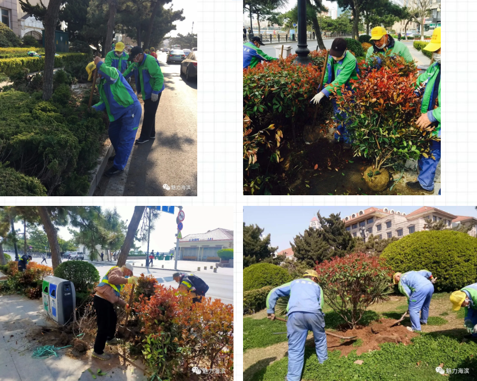 在進(jìn)行花卉換栽工作的同時(shí),棧橋景區(qū)抓住春季有利時(shí)機(jī),對(duì)景區(qū)的綠化苗木進(jìn)行了補(bǔ)栽和精細(xì)化提升,進(jìn)一步完善了景區(qū)的綠化景觀,提升了景區(qū)的整體形象。棧橋景區(qū)管理處對(duì)綠化景觀進(jìn)行全面自查摸排,提出整改提升意見(jiàn),安排部署落實(shí)。工作人員迅速行動(dòng),對(duì)缺株斷株、長(zhǎng)勢(shì)不佳的苗木進(jìn)行全方位補(bǔ)栽,同時(shí),加強(qiáng)做好景區(qū)綠化苗木的澆灌噴淋、修枝整形、病蟲害防治等養(yǎng)護(hù)工作。