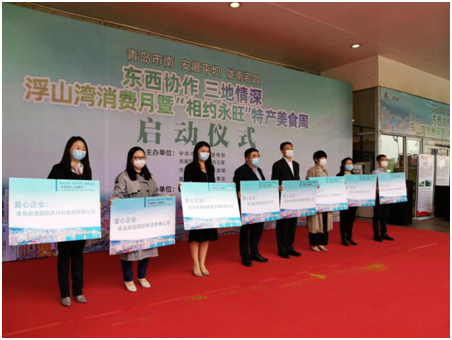 啟動儀式上,多家島城愛心企業(yè)現(xiàn)場認購當?shù)禺a(chǎn)品,以實際行動支持扶貧工作。