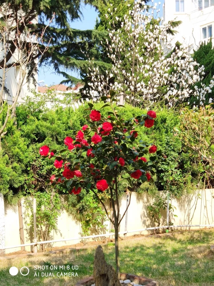 在這個溫馨,安詳,生機(jī)盎然的可愛小院,栽植了玉蘭,碧桃,丁香,連翹,海棠,李子等20余種花木。每年三月初寒風(fēng)料峭時,院子里結(jié)香,耐冬,迎春花便悄然綻放。隨之連翹,丁香,玉蘭,櫻花等花木便相繼開放。一直到深秋時節(jié),繡球花仍然挺立枝頭。