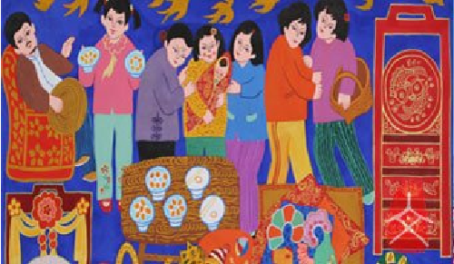 ????農(nóng)村,嬰兒降生后,除了向產(chǎn)婦的娘家報喜外,其他親朋好友一般不通報,在產(chǎn)房或者臨街的大門上掛一桃枝,上系一條紅布,稱為“挑紅”或者再在桃枝上串以棗、栗、蔥、錢等物。以桃諧逃,逃脫災(zāi)難,以棗諧早,栗諧立,早年成立,以蔥諧聰,錢喻財,聰明多財。挑紅后,給鄰居送染紅的雞蛋,“報喜雞蛋”,左鄰右舍拿雞蛋、紅糖之類來賀喜。膠州等地,添喜后第二天,凡是同姓的人家都去送喜面。膠州生男孩第三天報喜,女孩第六天報喜,去時帶一斤重的饅頭20個,娘家必須全部留下,否則男孩“不好養(yǎng)”,娘家回送19個雞蛋,4碗小米。
