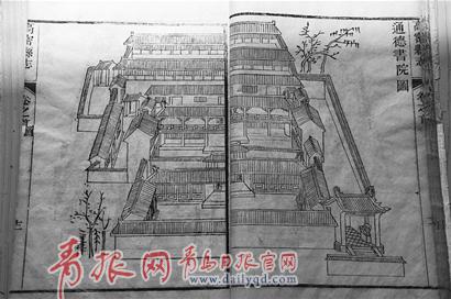 與高密鄉(xiāng)民沖突時(shí),德人曾毀壞高密縣城的同德書院。圖為清光緒版《高密縣志》上刊載的同德書院,現(xiàn)存于高密市檔案館(劉宗偉攝)