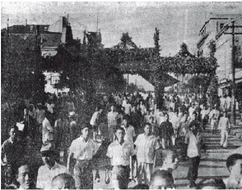 ????親歷者是這樣回憶的,“成千上萬的市民熱烈歡迎隊(duì)伍……男女老幼同胞和一隊(duì)隊(duì)的學(xué)生們,鼓掌、歡呼、跳躍,搖舞著國旗,年老的父老在樓上招手……在市民的歡呼聲里,充滿著熱忱、希望、熱情,實(shí)在難以形容”。