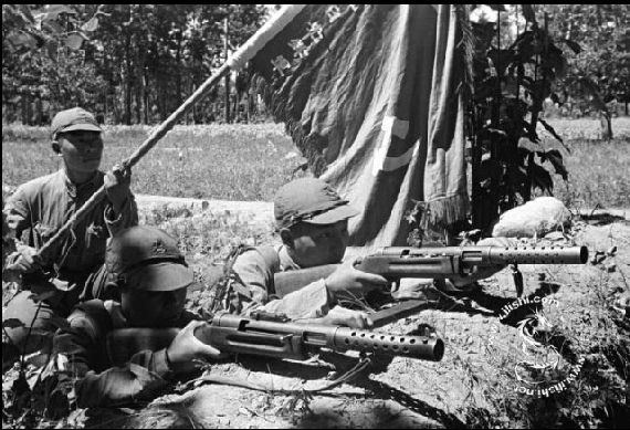 ????“抗日先鋒軍”司令員彭德懷,政治委員毛澤東,參謀長葉劍英,副參謀長張云逸,政治部主任楊尚昆。圖為美式裝備“抗日先鋒軍”演練。