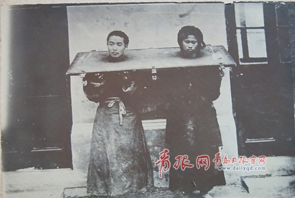 ????這些照片真實(shí)反映了德國占領(lǐng)青島時(shí),中國人的生活百態(tài)和現(xiàn)狀,既有裹著“三寸金蓮”中國婦女合影,每個(gè)人表情各異,也有使用傳統(tǒng)轎子、手推車等交通工具的人,更有執(zhí)法管理的中式警察隊(duì)伍,有警察,自然也少不了戴上刑具的“犯人”。