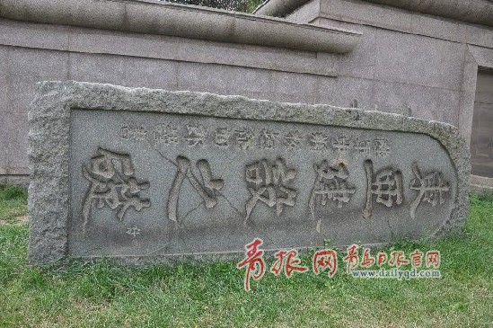 ????“建設(shè)東亞新秩序紀(jì)念塔”中,有侵華日本陸軍中將板垣征四郎題寫的“東亞建設(shè)之礎(chǔ)”石碑,這塊受到輕微損壞的石碑,如今靜靜地橫臥在青島市博物館后門左側(cè)的草地上。其相關(guān)文字介紹是,“該碑于1983年發(fā)掘于貯水山公園附近地下,隨后移交至市博物館”。