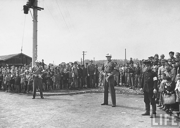 1946年,押送甲級戰(zhàn)犯去往遠(yuǎn)東國際軍事法庭的途中圍觀的民眾。