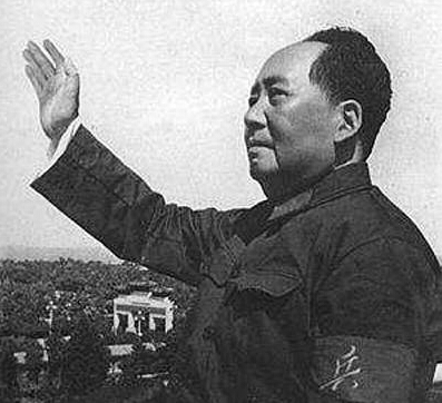 1966年8月18日毛澤東佩戴紅衛(wèi)兵袖章,在北京城樓首次檢閱紅衛(wèi)兵