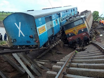 印度兩列客運(yùn)火車脫軌 至少24人死亡