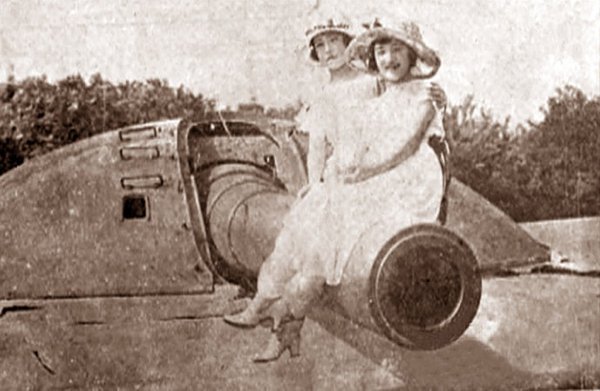 日本占領青島后,原德軍匯泉角炮臺被辟為炮臺公園。這是日本女子坐在德國大炮上留影。