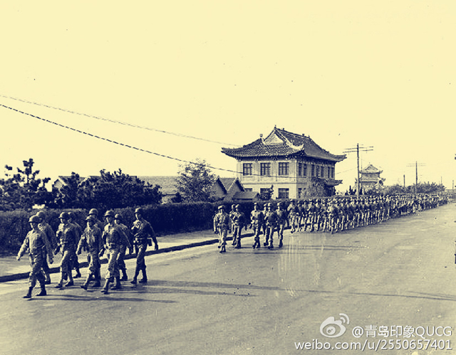 1945年8月15日,日本宣布投降,第二次世界大戰(zhàn)宣告結(jié)束。按照國民政府的受降公告,青島地區(qū)被劃為第十受降區(qū),受降地點(diǎn)設(shè)在匯泉跑馬場。1945年10月25日,日軍投降代表第五獨(dú)立混成旅團(tuán)長長野榮二少將將戰(zhàn)刀呈獻(xiàn)給了美軍代表謝勃爾少將和國民政府代表陳寶倉中將。(來源:微博@青島印象)