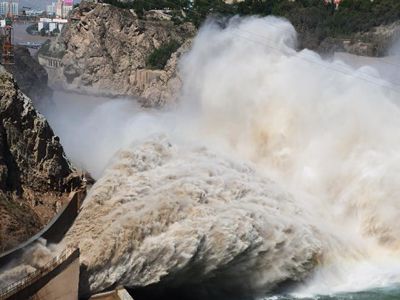 組圖:“黃龍”飛瀉劉家峽 黃河洮河口波瀾壯闊