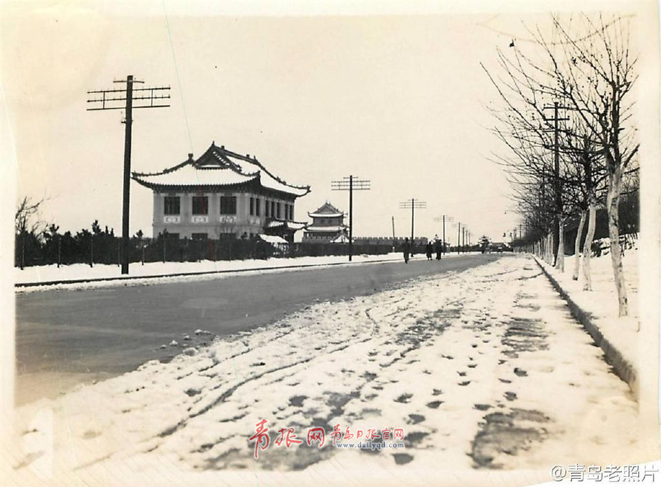 1930年代青島雪景:萊陽路(圖片來自微博“青島老照片)