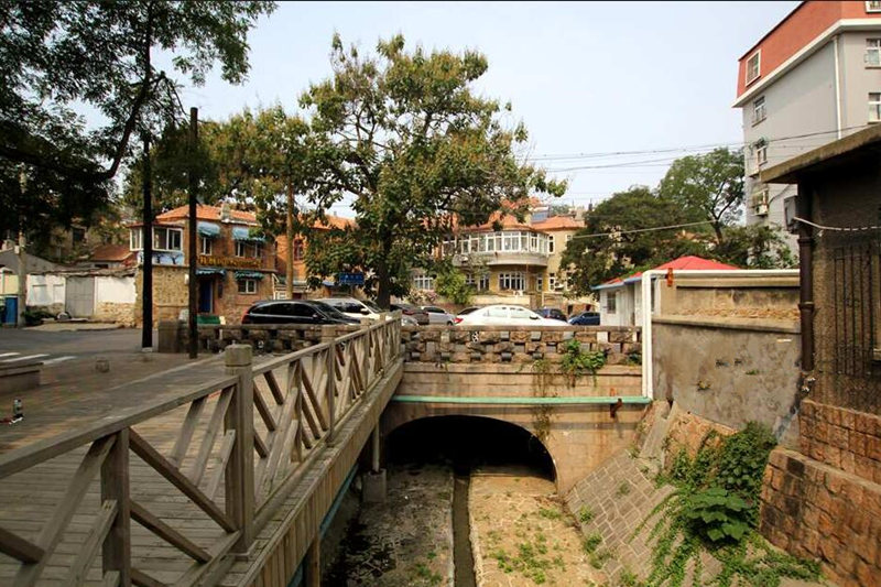“青島河”是一條季節(jié)性河流,發(fā)源于青島山,水流下來后就在如今的青島39中匯聚。河水沿著登州路、龍江路經(jīng)過大學(xué)路一直流入青島灣(今天后宮附近),全長(zhǎng)不到2.5公里。
