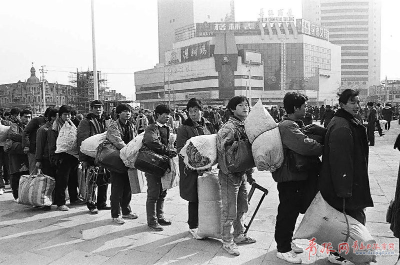 1990年火車站,春運返鄉(xiāng)農(nóng)民在排隊買票。(青島日報/青報網(wǎng)記者 王群 攝)