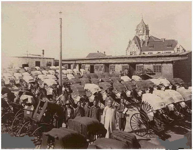 這是一張標(biāo)注攝于1900年的老照片(圖1),標(biāo)題為《青島人力車站》,我反復(fù)端詳著這張照片,因?yàn)檎掌臄z的年代久遠(yuǎn),沒有參照系,所以怎么也辨別不出這個(gè)“車站”在什么地方。