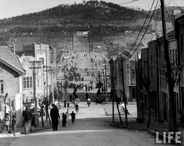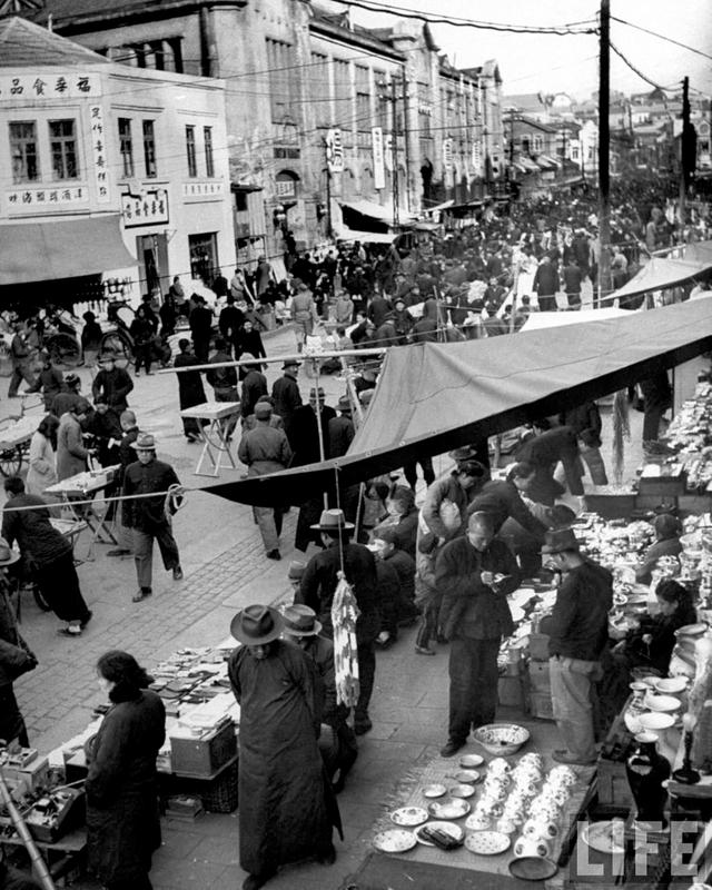 美國(guó)《生活》雜志的著名攝影記者Carl Mydans拍攝了一組1948的青島。圖為廣西路。