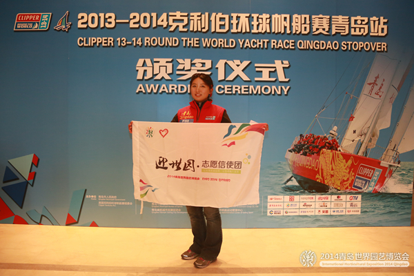 ????2013年,青島郭川船長(zhǎng)的名字被航海人耳熟能詳,因?yàn)樗瓿闪藛稳瞬婚g斷帆船環(huán)球航行,成為第一個(gè)完成這項(xiàng)偉業(yè)的中國(guó)人。2014年,航海人關(guān)注的焦點(diǎn)仍然在青島,有個(gè)姑娘參加了克利伯環(huán)球帆船賽,如果勝利歸來(lái),將成為中國(guó)女子環(huán)球航行第一人,她的名字叫宋坤,是個(gè)地地道道的青島嫚。聽(tīng)到世園會(huì)在自己的家鄉(xiāng)舉辦,宋坤也露出了驕傲和自豪的微笑,手持志愿信使旗表達(dá)對(duì)世園會(huì)的美好祝福,并表示將在以后比賽的間歇,積極向世界各地宣傳推介青島世園會(huì),做好世園會(huì)的志愿信使。
