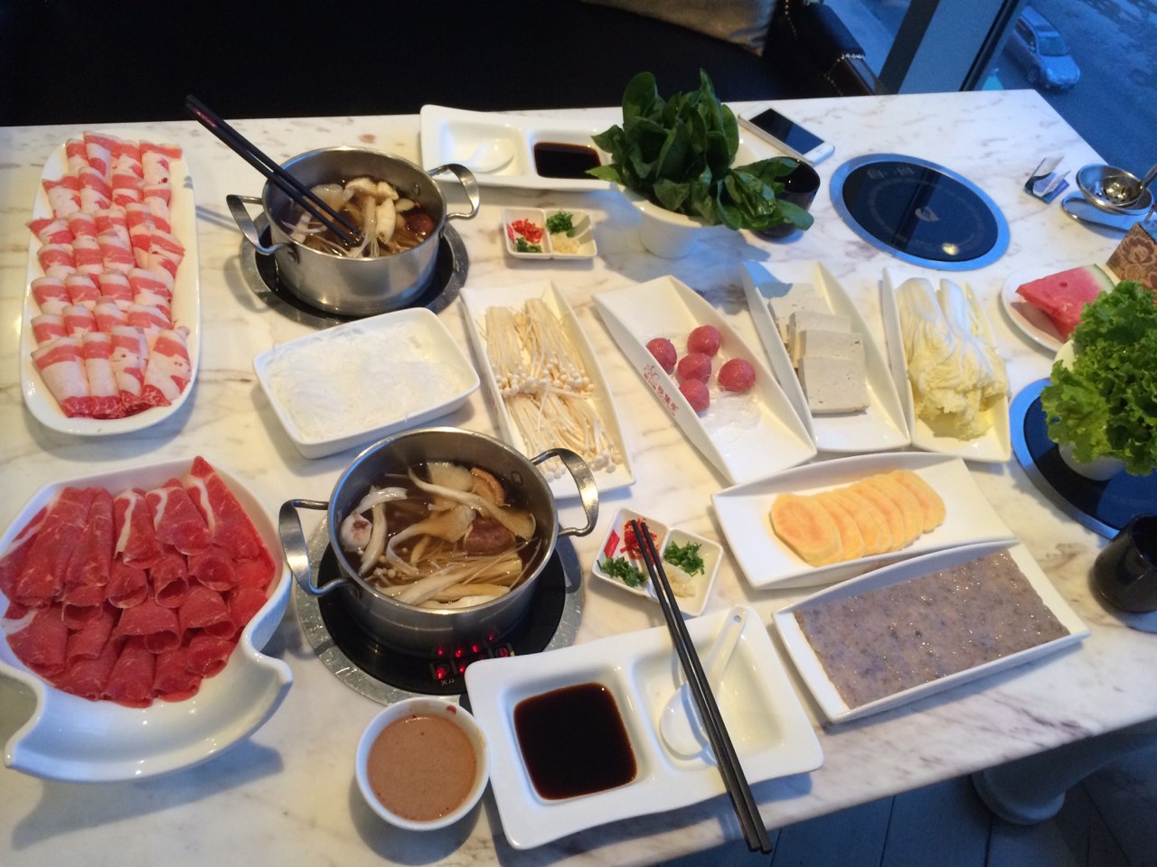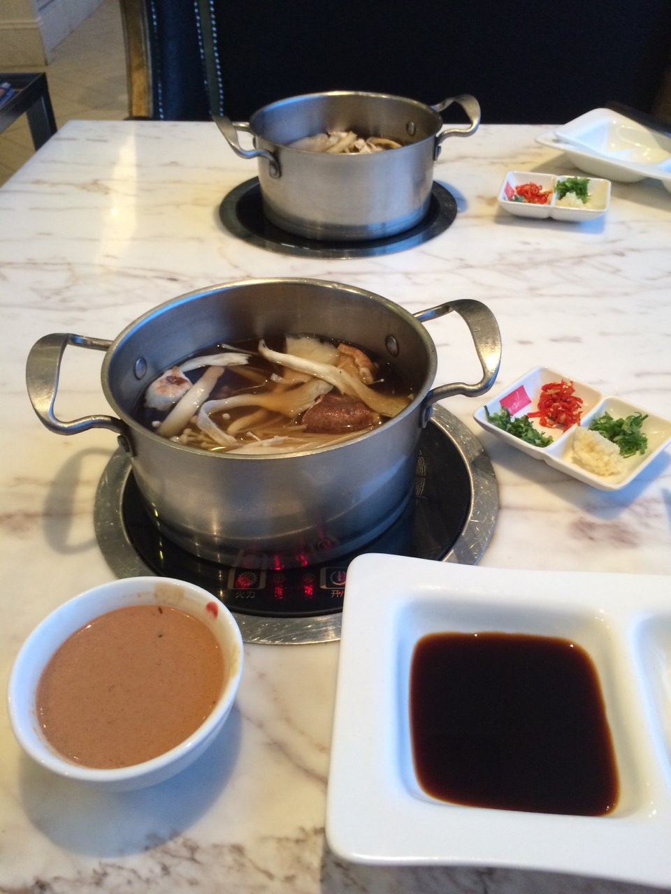 ??? 環(huán)境舒適,口味不錯的一家火鍋。每種單品都可以點半份,蝦滑Q彈不亞于海底撈,而且價格實惠,蔬菜價格基本在10元以內(nèi),一般的肥牛羊肉也只要二三十元,不過肉類口感一般。兩人點了一大桌撐到扶墻出,花了138,常有團購,消費還送代金券。