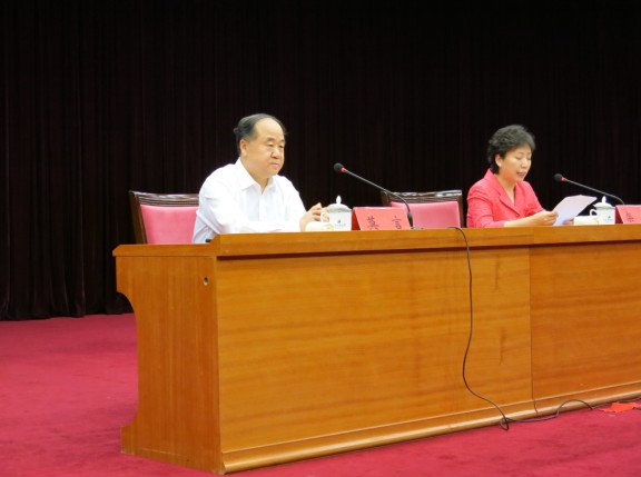 ??? 6月6日上午,著名作家中國(guó)諾貝爾文學(xué)獎(jiǎng)獲得者——莫言,在青島市機(jī)關(guān)會(huì)議中心開(kāi)展了一場(chǎng)引人入勝的文學(xué)演講。講座中,莫言以《小說(shuō)與故鄉(xiāng)》為主題,用幽默風(fēng)趣的語(yǔ)言帶領(lǐng)現(xiàn)場(chǎng)觀眾走進(jìn)了一個(gè)樸實(shí)而又神秘的高密“東北鄉(xiāng)”。期間,莫言也玩笑自稱“我是青島人”,引發(fā)現(xiàn)場(chǎng)陣陣笑聲。