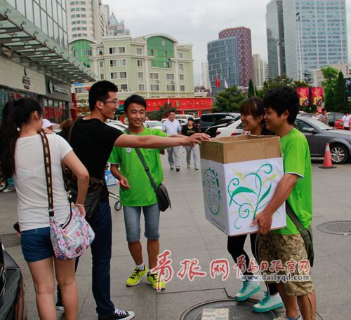 在兩個(gè)月的校園倡議之后,“一紙心意”也由校園擴(kuò)展到了學(xué)校的周邊地區(qū)。炎炎夏日,弘量行動(dòng)組的隊(duì)員們走過黃島的大街小巷。就連馬路上、垃圾箱中的廢棄紙張也不放過。7月5日至13日,他們走進(jìn)居民小區(qū)與物業(yè)公司展開合作,并得到了負(fù)責(zé)人的大力支持。其間,在魯商藍(lán)岸國(guó)際和恒業(yè)嘉園等小區(qū)內(nèi),行動(dòng)組不僅張貼了“一紙心意”的宣傳海報(bào),還與物業(yè)建立了長(zhǎng)期合作關(guān)系,將定期回收來(lái)到紙張送往回收地。恒業(yè)嘉園的張先生告訴記者:“我的家中經(jīng)常會(huì)產(chǎn)生一些廢棄的紙張,一直苦于沒有方法處理,而這群年輕人剛好解決了我的問題,而且把廢紙交給他們既環(huán)保又有意義!”