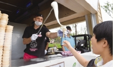 土耳其拉長(zhǎng)冰激凌是夏日游客的最愛。 邢志峰 攝
