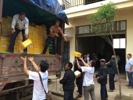 海爾物資抵達(dá)震中 和當(dāng)?shù)孛癖婏w快接力卸貨