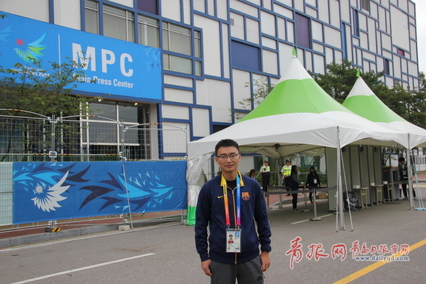 ????青島日?qǐng)?bào)/青報(bào)網(wǎng)訊 北京時(shí)間9月17日,2014年仁川亞運(yùn)會(huì)開(kāi)幕在即,青島日?qǐng)?bào)記者孫飛已抵達(dá)仁川,圖為本報(bào)記者在仁川亞運(yùn)會(huì)新聞中心合影。