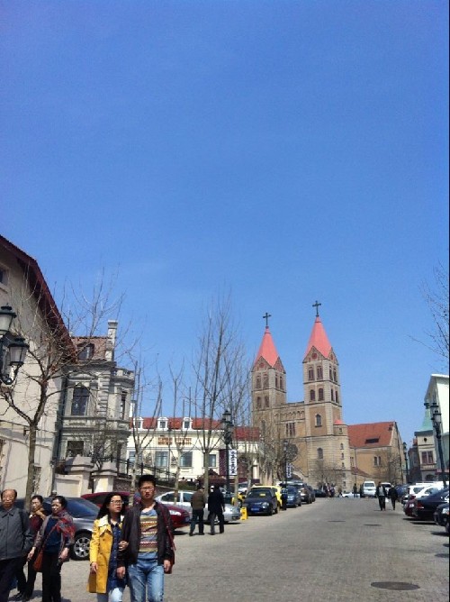 下了公交車再走一程,看看藍天,賞賞教堂,心情美美地。