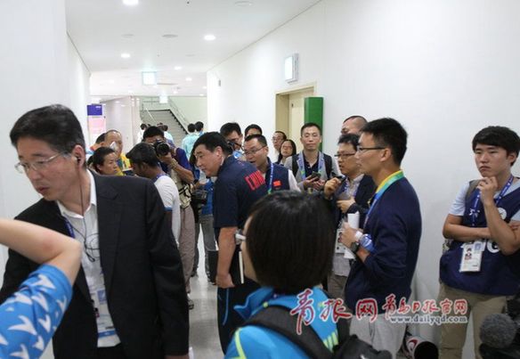 ????青島日?qǐng)?bào)/青報(bào)網(wǎng)訊 仁川亞運(yùn)會(huì)射擊比賽,女子10米氣步槍團(tuán)體賽,由易思玲、武柳希和張彬彬組成的中國(guó)隊(duì),以1253.8環(huán)的總成績(jī)列第一位,但因?yàn)橘惡蟊淮_認(rèn),張彬彬的槍械出了問(wèn)題,中國(guó)隊(duì)團(tuán)體賽成績(jī)被取消,團(tuán)體冠軍被成績(jī)列在第二的伊朗隊(duì)奪走,伊朗隊(duì)奪冠的成績(jī)是1245.9環(huán)。但最終中國(guó)代表團(tuán)申訴成功,女子10米氣步槍團(tuán)體冠軍“失而復(fù)得?!比袊?guó)選手,易思玲、武柳希、張彬彬也攜手進(jìn)入個(gè)人決賽。圖為青島日?qǐng)?bào)/青報(bào)網(wǎng)記者孫飛直擊王義夫申訴全程。