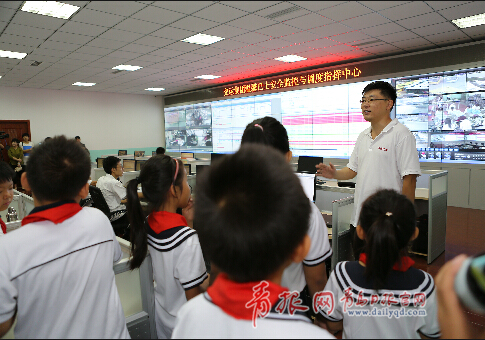 ??? 青島日報/青報網(wǎng)訊 “叔叔,一輛車上有幾塊電池???”、“溫馨巴士一共有多少條線路?”,一來到交運溫馨巴士的智能指揮調(diào)度中心,50名富源路小學(xué)的學(xué)生們就帶著好奇心向工作人員不停地提問。