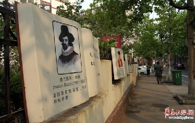 ??? 上海路算是一條開荒之路,大鮑島東山之上,原是一片荒嶺,德國侵占青島之后,在山梁上修了上海路。上海路是一條比較有文化氣息的路,在這條路上最早的建筑是禮賢學(xué)院,是當(dāng)時(shí)的德國傳教士所建”,幾年前路過上海路尤其上海路小學(xué)到市立醫(yī)院西院區(qū)路段,不但有禮賢書院舊址,現(xiàn)在還集中了上海路小學(xué)、青島九中及其南校區(qū)等,不但路口有周恩來的“為中華之崛起而讀書”塑像,道路兩側(cè)有中國各大高校的校訓(xùn)、中外名人名言宣傳欄等,就連硬化的路面上或休息石凳上也鐫刻了《論語》、《禮記》等的名言警句,甚至連行道樹周圍也做成了書卷軸樣的大理石圍欄,讓人不得不感嘆其中濃厚的書香氛圍。