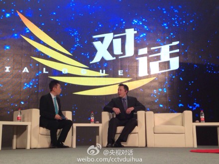 ????特斯拉CEO Musk中國(guó)首秀是在2014年4月21日下午在極客公園的活動(dòng)上,他現(xiàn)場(chǎng)錄制了一場(chǎng)中國(guó)中央電視臺(tái)《對(duì)話(huà)》欄目,并與聯(lián)想集團(tuán)CEO楊元慶進(jìn)行了一場(chǎng)對(duì)話(huà)。
