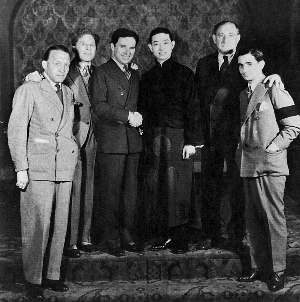 ????在美國演出結(jié)束后,美國文藝界的大腕和政界精英聯(lián)合為其舉行高規(guī)格招待宴會(huì)。就在大家開懷暢飲時(shí),一位穿著破爛,渾身臟兮兮的“清潔工”不顧工作人員阻攔沖進(jìn)了宴會(huì)廳,一把握住了梅先生的手大呼:“我終于見到你了!”后來大家才得知,這位“清潔工”竟是著名笑星卓別林!由于當(dāng)時(shí)在拍影片《城市之光》,卓別林飾演一位清潔工,得知梅先生到美國后,就匆匆從拍攝現(xiàn)場趕來,以自己特有的幽默方式與自己的“偶像”見面。從一定意義上完全可以說,梅蘭芳是進(jìn)軍好萊塢的“中國第一人”。