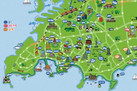 這張暢游青島的手繪地圖,其實用價值不容忽視?!扒鄭u因特殊的丘陵地貌,城市道路復(fù)雜多變,而左、右、東、西等方位名詞卻常常不足以表述清楚。近幾年我一直在想,應(yīng)該為這些到青島旅行的人畫一幅能讓他們清晰明了、方便快捷地找到想去景點的地圖。”
