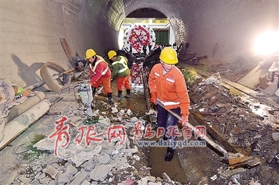 ■圖:地鐵工地內(nèi),工人正在緊張施工。