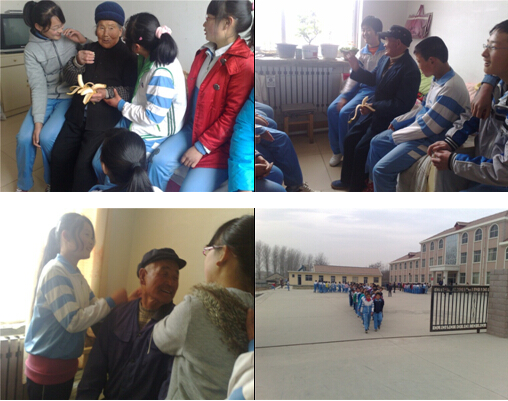 學校定期組織部分學生到敬老院進行活動,從簡單的衛(wèi)生清理、陪著老人聊天到組織文藝骨干給老人表演節(jié)目。我們都會用心去做,用愛去完成。從活動開始到結(jié)束,老人們的臉上洋溢著幸福的笑容,同學們都意識到此次活動的真正意義所在,同學們都表示今后在家里要更加關(guān)心爺爺奶奶,而且有空了還要到這里來看望這里的老人們(每次參加活動的人數(shù)在200—300人之間)。