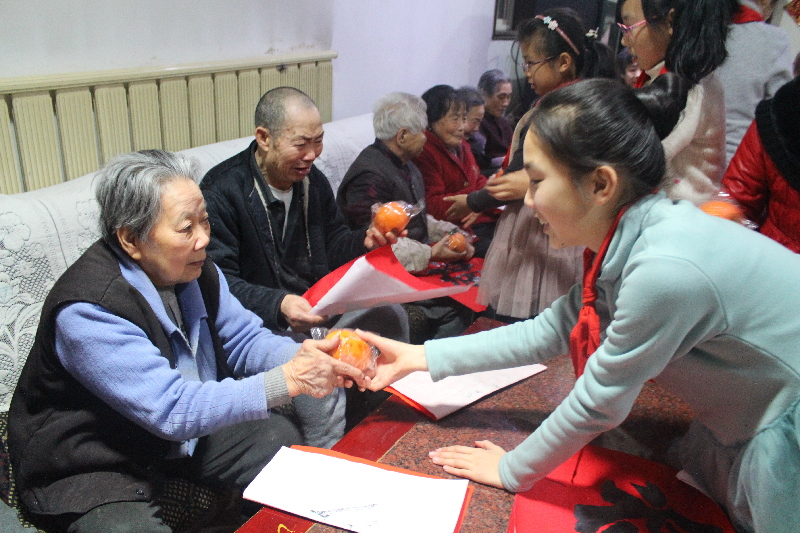 每逢小年、農(nóng)歷新年等節(jié)日,學(xué)校都會組織隊員們走進(jìn)社區(qū)敬老院。隊員們精心準(zhǔn)備的精彩節(jié)目串燒將歡樂帶給了每一位老人,讓老人們在歡樂中感受到了溫暖。建國村社區(qū)吉祥福敬老院、四機(jī)老年公寓、鎮(zhèn)江路老年公寓……都有隊員們表演節(jié)目、打掃房間、貼福字的小小身影。