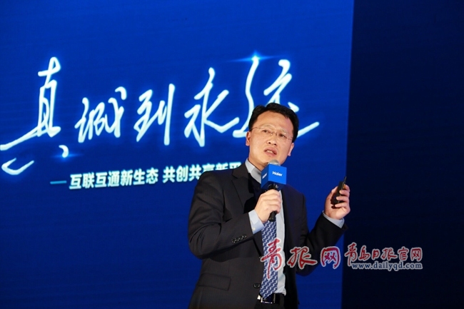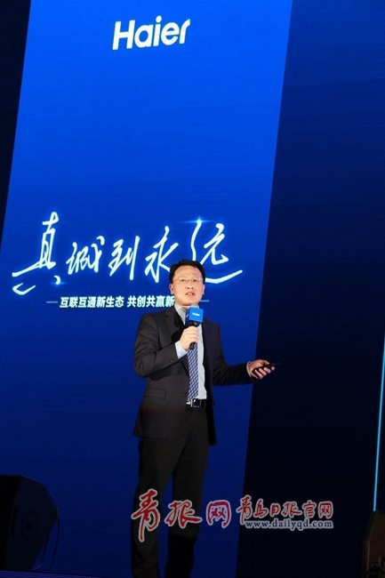 家博會開幕首日,海爾品牌發(fā)布會舉行,發(fā)布海爾智慧生活平臺,也是全球首個全開放、全透明生態(tài)體系。海爾集團(tuán)董事局副主席,首席執(zhí)行官梁海山解讀了海爾互聯(lián)網(wǎng)時代的“真誠到永遠(yuǎn)”,他表示,海爾的互聯(lián)網(wǎng)轉(zhuǎn)型是圍繞誠信布局,給用戶更好的體驗(yàn)。海爾集團(tuán)董事局副主席 輪值總裁在做海爾的互聯(lián)網(wǎng)平臺戰(zhàn)略。(青島日報/青報網(wǎng)記者 張麗潔攝)