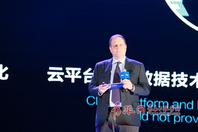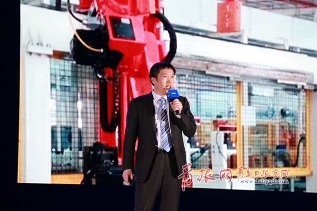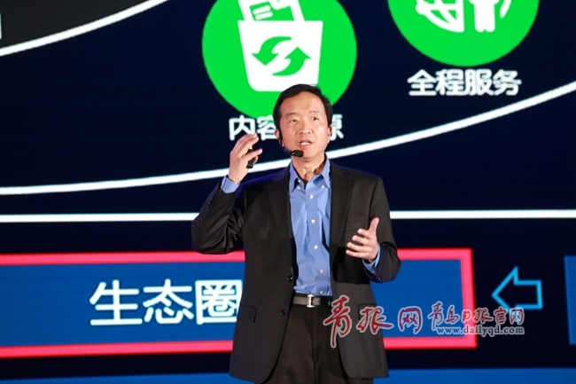 海爾集團(tuán)董事局副主席 輪值總裁在做海爾的互聯(lián)網(wǎng)平臺戰(zhàn)略。(青島日報/青報網(wǎng)記者 張麗潔攝)