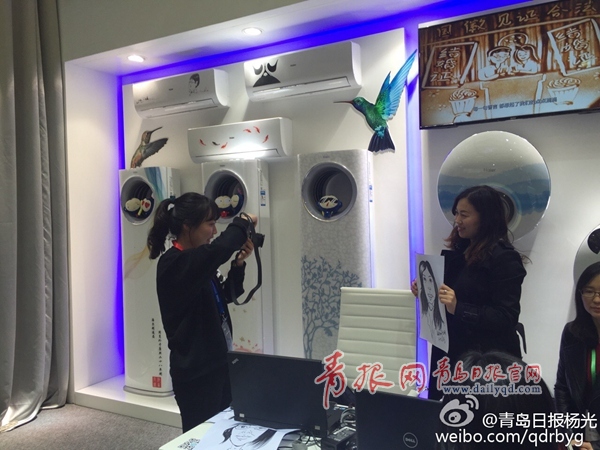 會(huì)場(chǎng)現(xiàn)場(chǎng)的眾創(chuàng)匯體驗(yàn)環(huán)節(jié),有藝術(shù)家為用戶手繪頭像,由眾創(chuàng)匯平臺(tái)上傳,讓用戶體驗(yàn)個(gè)性空調(diào)定制。
