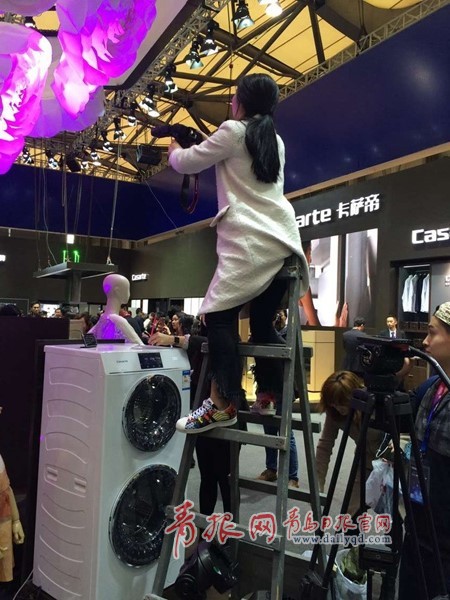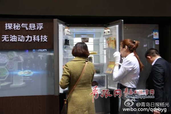 體驗(yàn),拍攝,交互……這是在海爾家博會(huì)展區(qū)里最普遍的場(chǎng)景,瞧,這倆人玩的多樂呵。