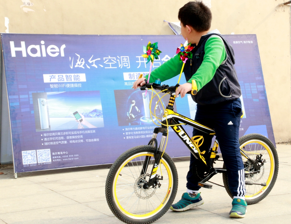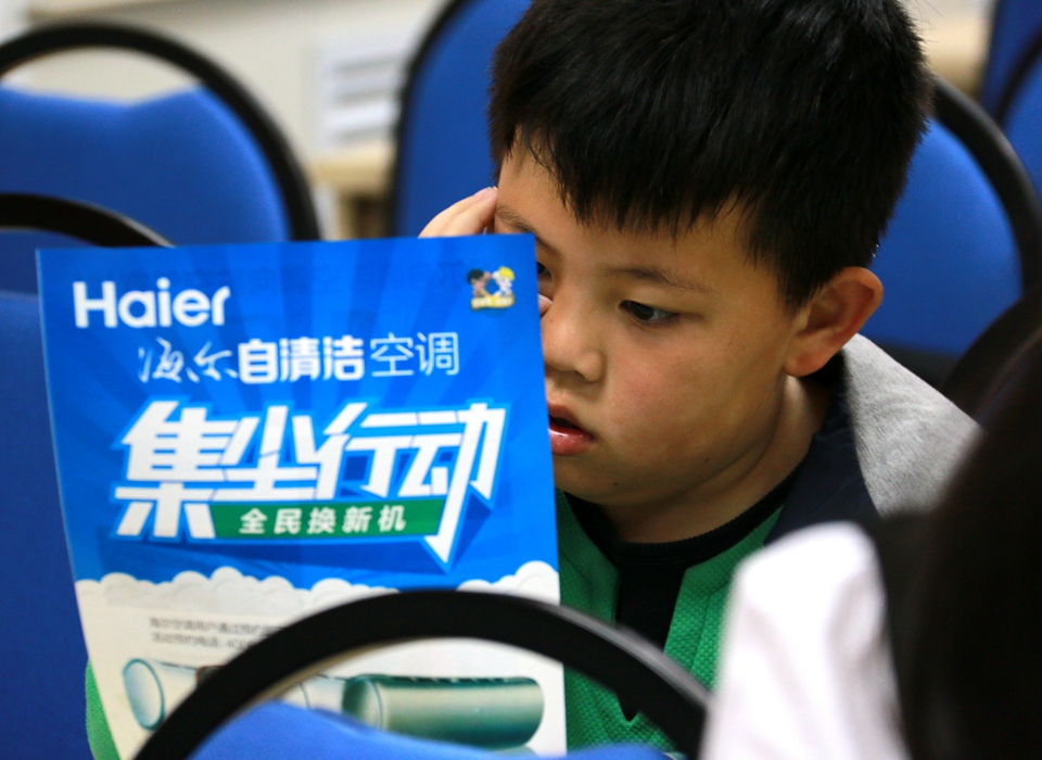 “我是海爾最美的小宣傳員,耶!”青島日報/青報網(wǎng)記者 張麗潔攝