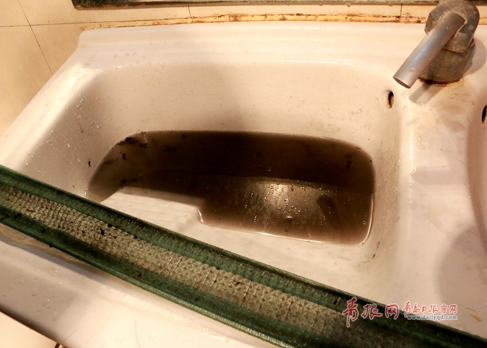 清洗過濾網(wǎng)后的污水。青島日報/青報網(wǎng)記者 張麗潔攝