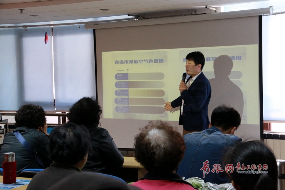 海爾工作人員為大家講解青島市家庭空氣色譜圖。青島日報(bào)/青報(bào)網(wǎng)記者 張麗潔