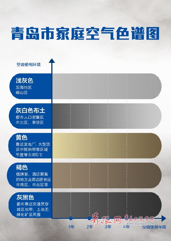 活動(dòng)中,海爾工作人員提供的一張“青島市家庭空氣色譜圖”引起了在場居民的熱議?;蛟S,你也和在場的居民一樣充滿好奇,“空氣不就是透明的嘛,怎么可能有色譜圖!”原來,經(jīng)常使用空調(diào)的居民,空氣懸浮灰塵被吸附到空調(diào)中,長期積累的灰塵在空調(diào)換氣時(shí)吹出,就變成了空氣的顏色。由于空調(diào)使用區(qū)域、清潔頻率和清潔程度不同,每個(gè)家庭的空氣環(huán)境差異較大。