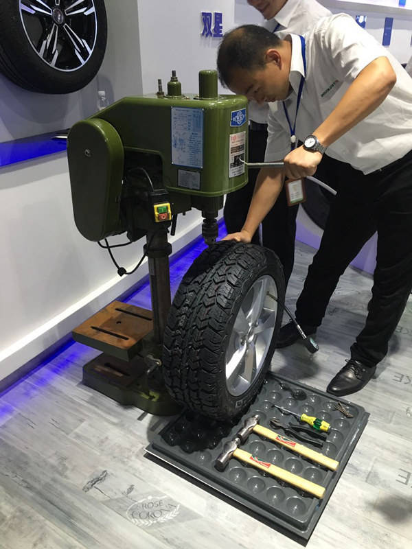 扎完拔出來,輪胎納米材料快速自我修復(fù),車還要照樣開著跑。