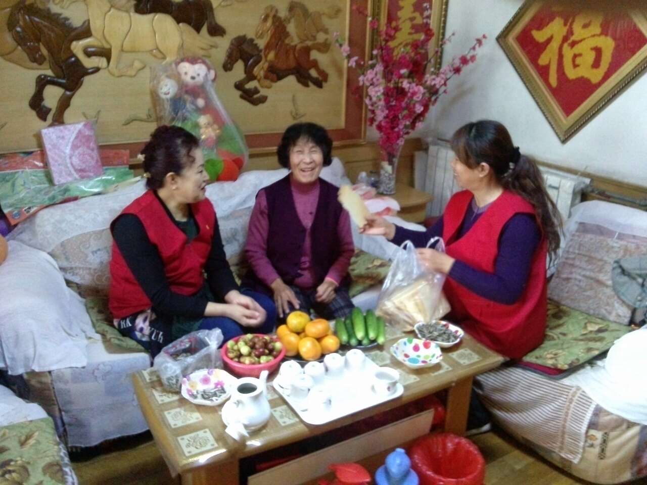 ????進(jìn)門后魏文濤先檢查了老人屋內(nèi)的各處管路, 讓老人解除了因冬天嚴(yán)寒怕管路跑漏水的困擾,王麗萍和王愛娜則陪著臧阿姨嘮家常,屋外寒風(fēng)蕭瑟,屋里其樂融融。
