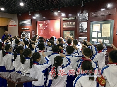 清明節(jié)來臨,孩子們?cè)诘缆方煌ú┪镳^接受愛國主義教育。